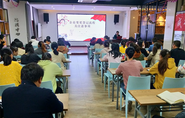 10月23日,由受理中心汪蕓主講的“企業(yè)變更登記流程及注意事項”專題PPT分享在一樓眾創(chuàng)空間舉行,園區(qū)企業(yè)負(fù)責(zé)人和中心財稅服務(wù)人員40余人參與此次分享。
