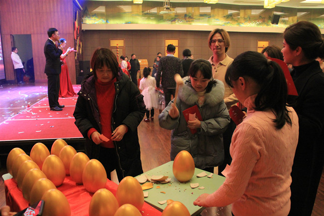 活動現(xiàn)場,中心準備了豐厚的禮品。主持人通過自主報名、擊鼓傳花等方式選取嘉賓參與互動節(jié)目,完成任務(wù)的即可得到砸金蛋的機會,把活動氣氛引向高潮。