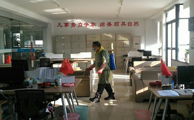 四是儲備物質,保障有力。一是完成疫情防控所需口罩、消毒液、額溫槍、消毒酒精、洗手液等14個品類物質的采購儲備,并在單位設立了“疫情防控物質專柜”;二是在2月9日安排專人對單位辦公、生活場所全面進行消毒噴灑;三是在適當位置設立了“隔離間”。