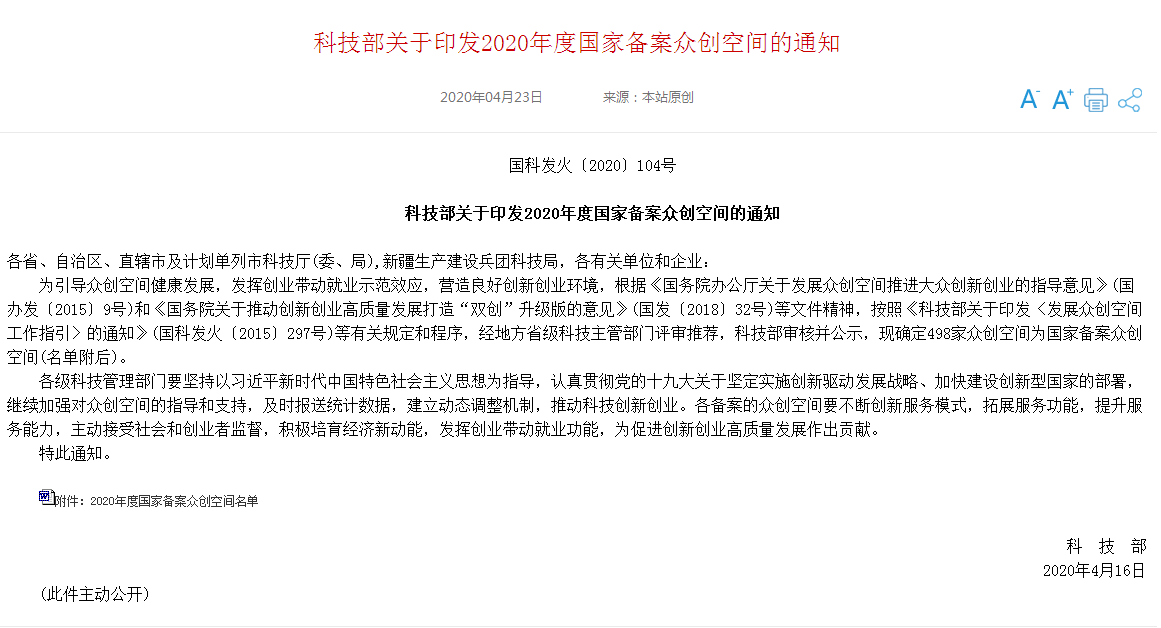 近日,國家科技部發文,印發2020年度國家眾創空間的通知,安徽省12家眾創空間上榜,歙縣青創——眾創空間成為全市首家民營眾創空間獲此殊榮。