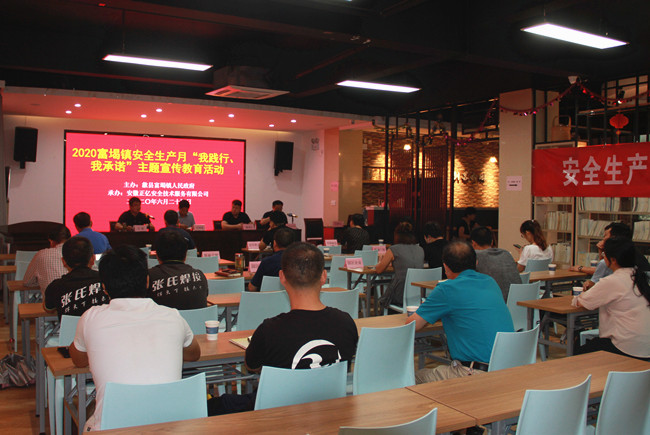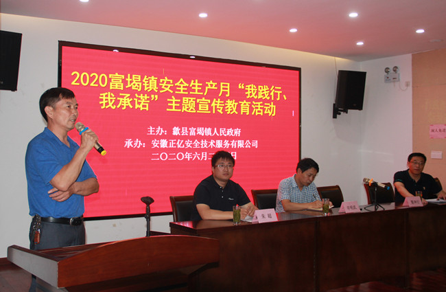 2020年6月24日,2020’富堨鎮安全生產月“我踐行,我承諾”主題宣傳教育活動在我中心順利舉辦。富堨鎮政府分管副鎮長朱超作主題講話,縣應急管理局副局長許明武到會指導,富堨園區重點企業負責人及安全管理人員30余人參與主題活動。此次活動由富堨鎮政府主辦,安徽正億安全技術服務公司承辦。