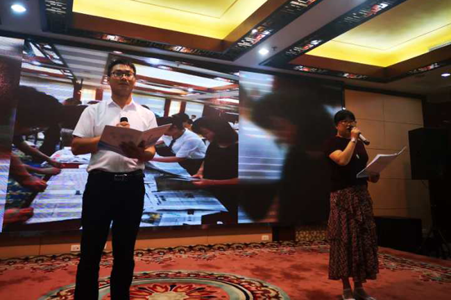 在為期6天的培訓中,我中心學員張瀟在培訓班上表現積極,主動承擔“復述培訓老師昨日上課內容、新聞早播報、每日調查問卷統計”三大版塊的值日生播報稿編輯及播報等工作。同時,無論在互動游戲環節、還是在“頭腦風暴”培訓模擬項目中,張瀟都能迅速抓住關鍵點,主導完成培訓任務,使所在小組兩次獲得全場第一的優秀成績。在最后的“賽飛之夜”晚會上,張瀟不僅改編了《我驕傲,我是賽飛人》文稿,并與小組組員合作進行詩朗誦,獲得老師和學員的贊賞。