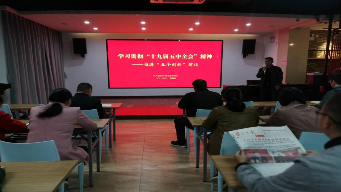 2020年11月4日,金信財稅黨支部在公司一樓會議室組織全體黨員及員工認真學習“十九屆五中全會”精神,并結合公司實際,繼續大力推進“五個創新”建設。支部宣委方志義在會上做動員講話,組委吳云平進行學習部署,并且提出具體要求。