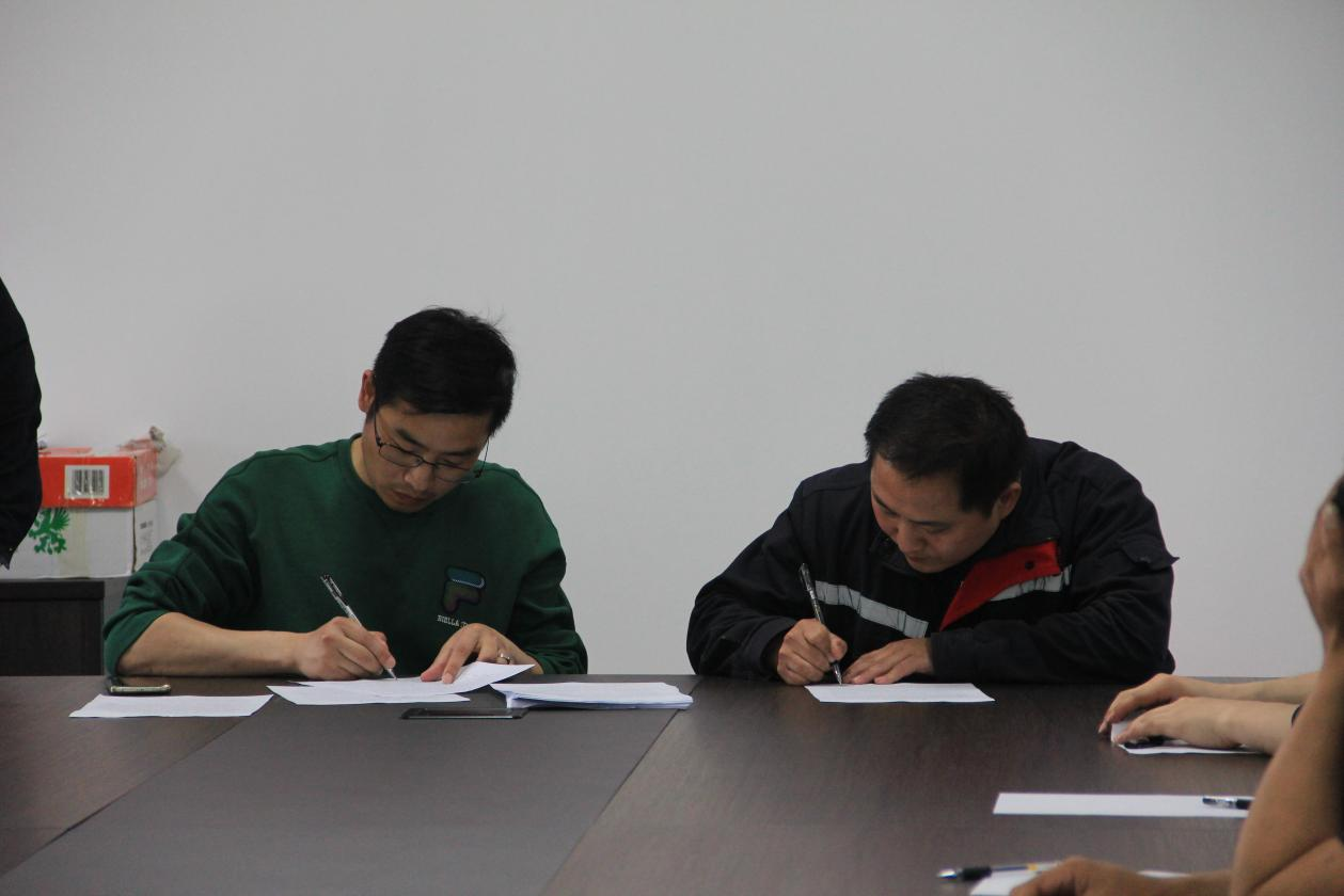 (上圖為公司總經理吳經錢與職工簽訂《安全生產責任書》。)