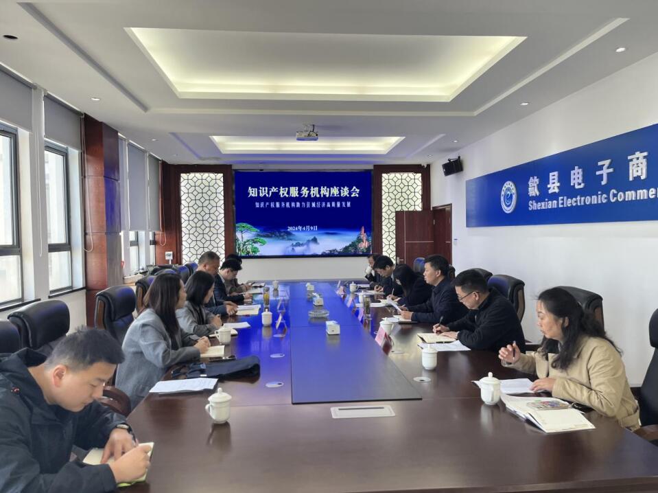 為進一步完善我縣知識產權服務體系,提升服務能力,不斷提升知識產權公共服務能力和水平,不斷滿足社會公眾和創新主體需求,加快推動知識產權公共服務高質量發展,為我縣知識產權強縣建設提供強有力的服務支撐。4月9日上午,知識產權服務機構座談會在網點(黃山市知識產權“一站式”服務工作站)五樓會議室召開,會議由縣市監局黨組書記、局長江志偉主持,縣政府黨組成員、副縣長林一凡,經開區管委會、科商經信局、市場監管局負責同志,以及安徽香寧眾創科技服務有限公司、黃山啟辰華章知識產權代理事務所(普通合伙)、安徽信達商標事務所有限責任公司知識產權服務機構負責人參加。