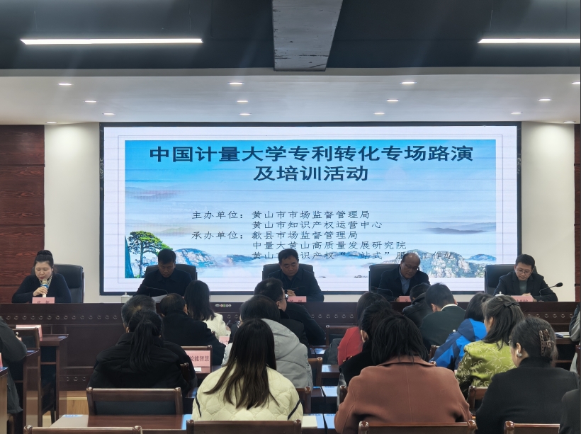 11月29日,中國(guó)計(jì)量大學(xué)專利轉(zhuǎn)化專場(chǎng)路演及培訓(xùn)活動(dòng)在黃山市知識(shí)產(chǎn)權(quán)“一站式”服務(wù)工作站(安徽香寧眾創(chuàng)科技服務(wù)有限公司)舉辦。黃山市市場(chǎng)監(jiān)督管理局(知識(shí)產(chǎn)權(quán)局)黨組成員、副局長(zhǎng)黃劍,黃山市市場(chǎng)監(jiān)管局黨組成員、副局長(zhǎng)張妮,歙縣市場(chǎng)監(jiān)督管理局黨組書記、局長(zhǎng)江志偉以及全市知識(shí)產(chǎn)權(quán)行政管理人員和相關(guān)企業(yè)參加活動(dòng)。