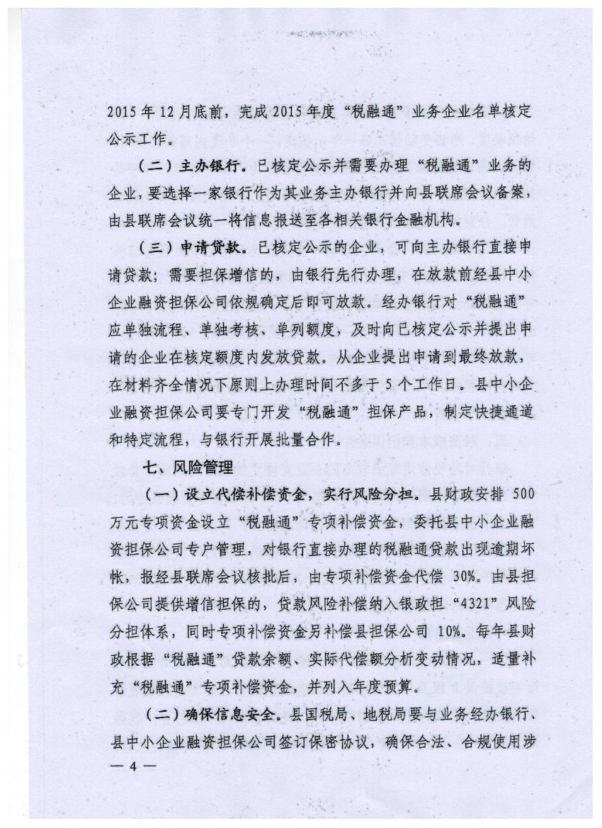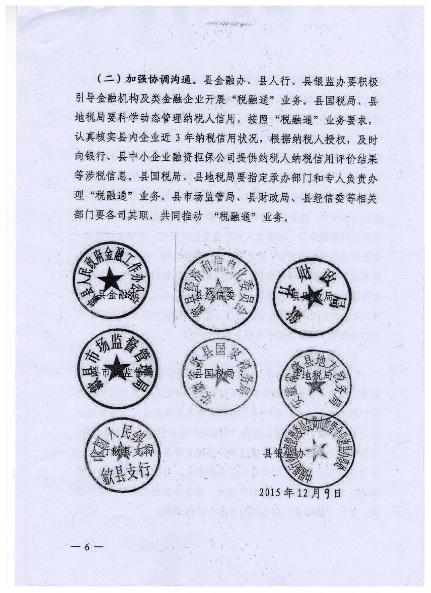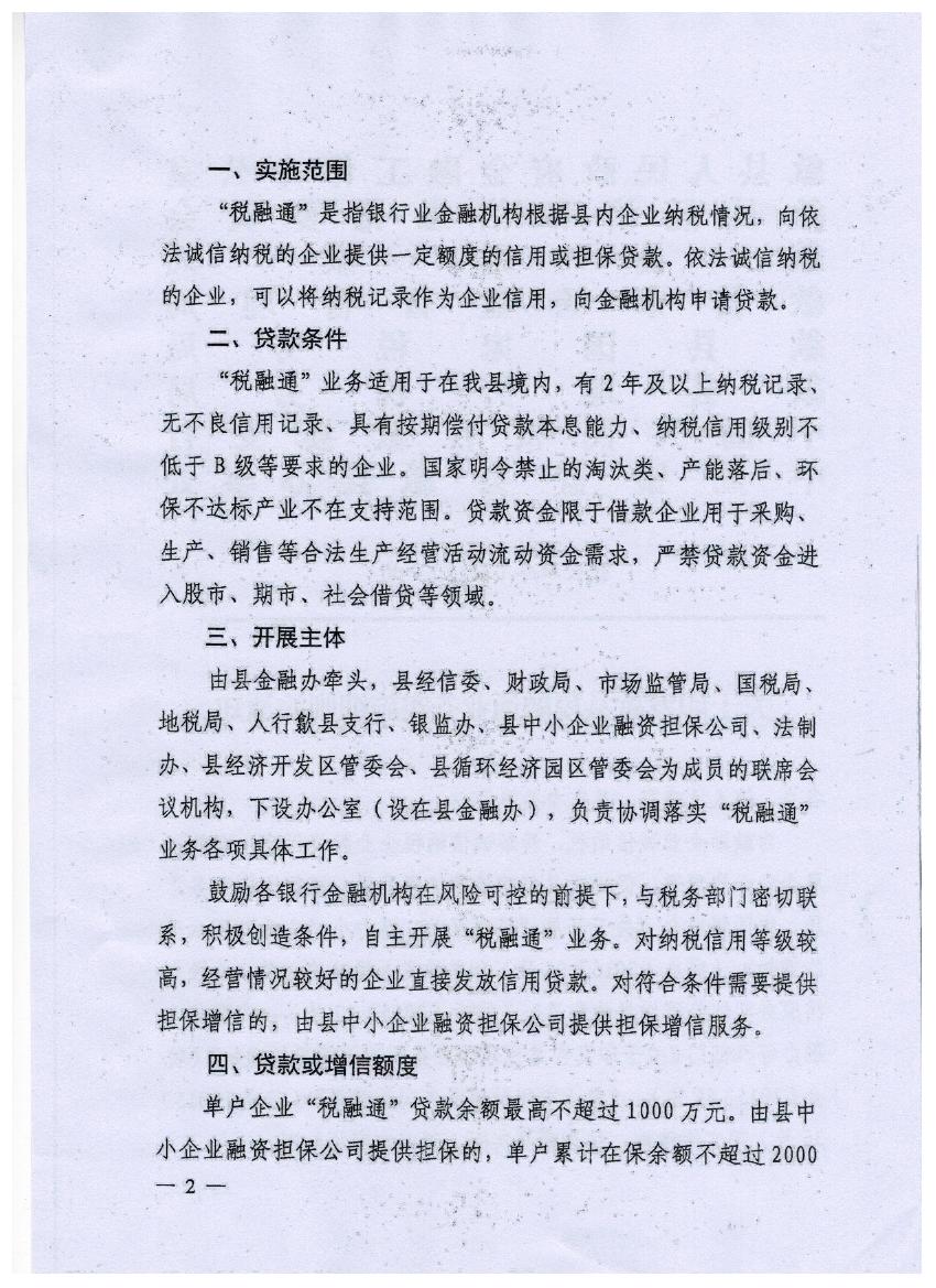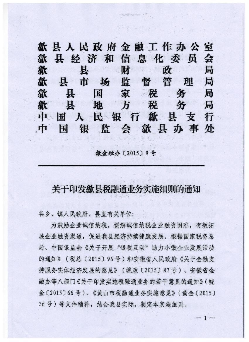關于印發歙縣稅融通業務實施細則的通知